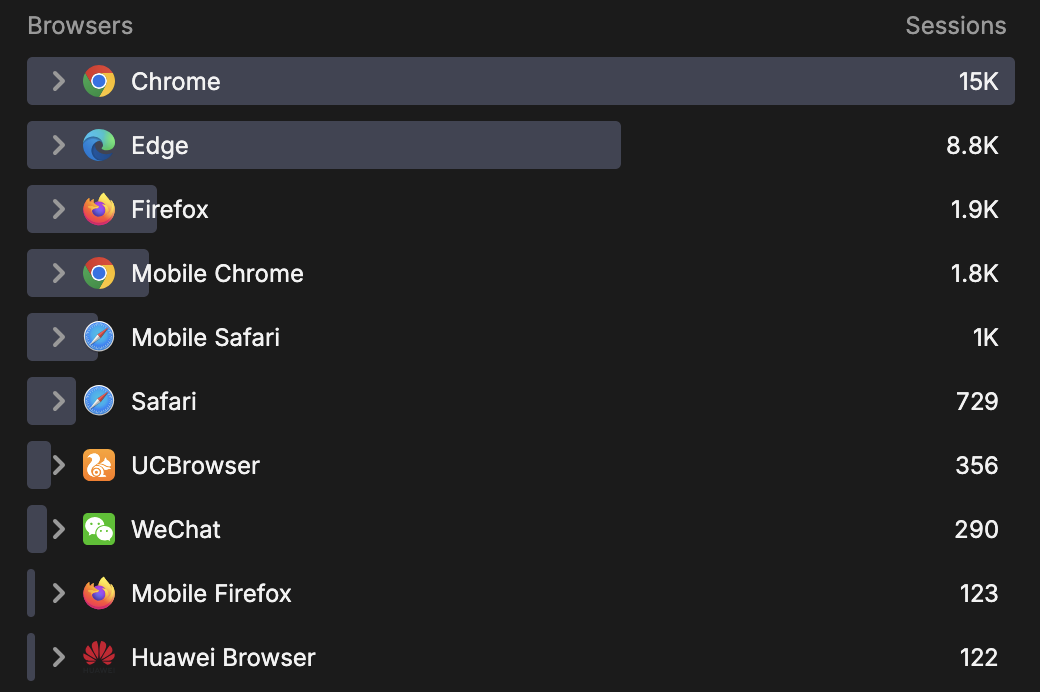 接下来是基于 User Agent 的统计。首先是浏览器分布: