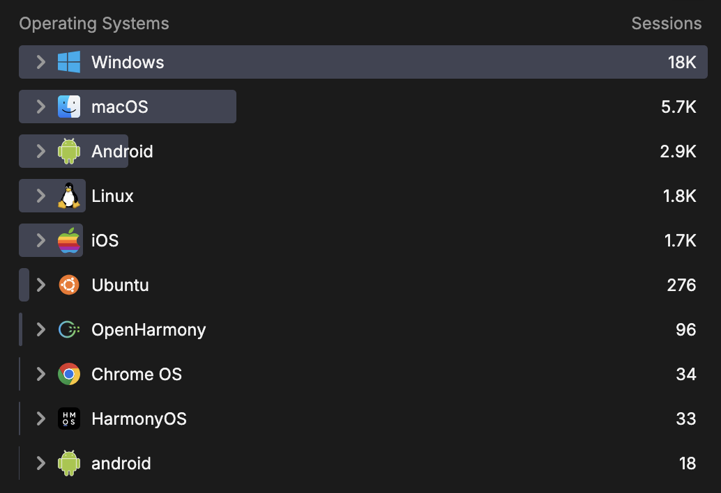 Windows 占比最高,macOS 次之。考虑到博客内容主要涉及计算机技术,这也大致反映了相关从业人员的偏好。
